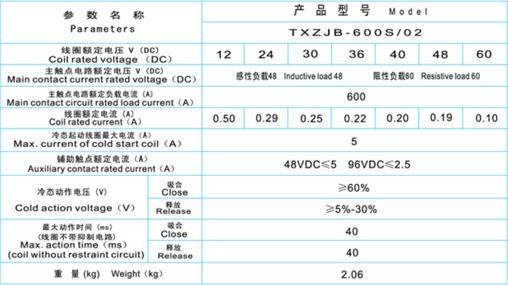 TXZJB-600S/02直流接触器